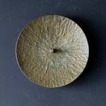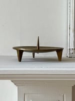 A simple dish candleholder of cast bronze, raised on three feet, with nice patina. Second half twentieth century, found in Germany.