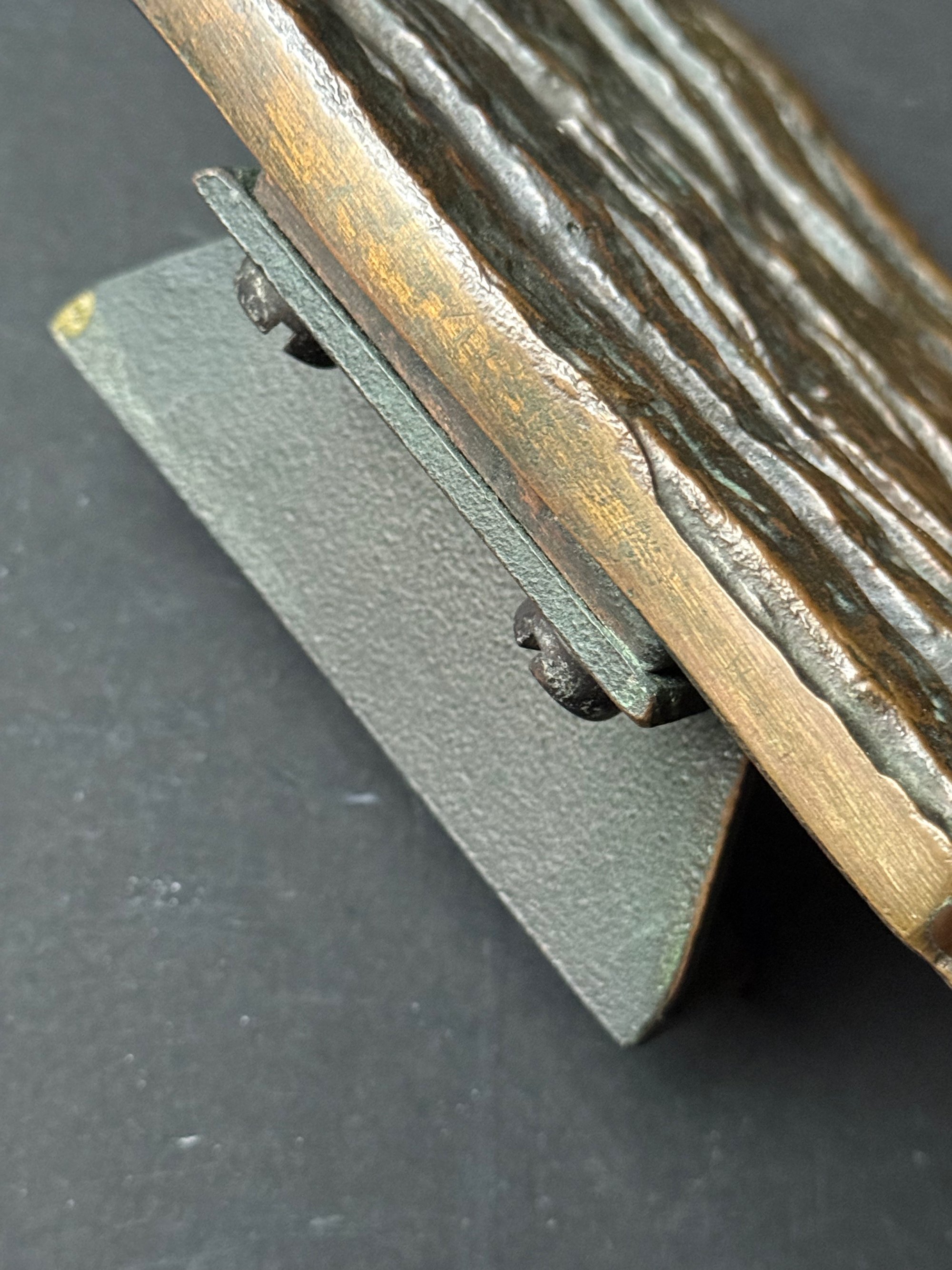 Medium-sized patinated bronze push or pull door handle, with bark or rock pattern in good vintage condition. Second half 20th century. Two available - each with slightly different brackets and patina.