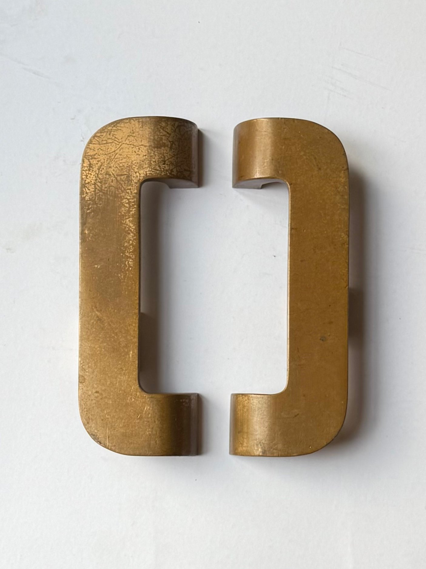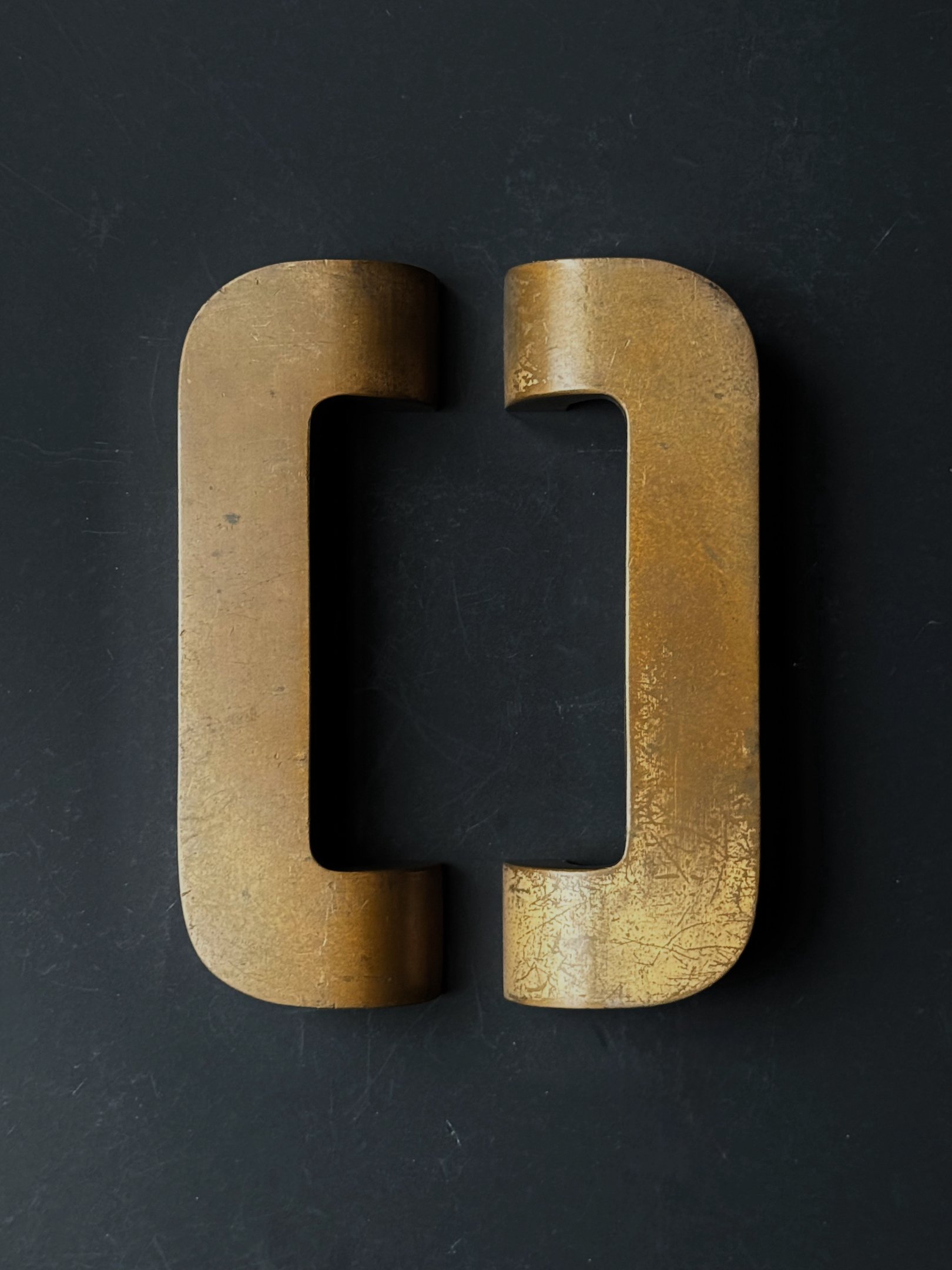A pair of heavy push-pull door handles of cast bronze. In art deco style, 20th century.